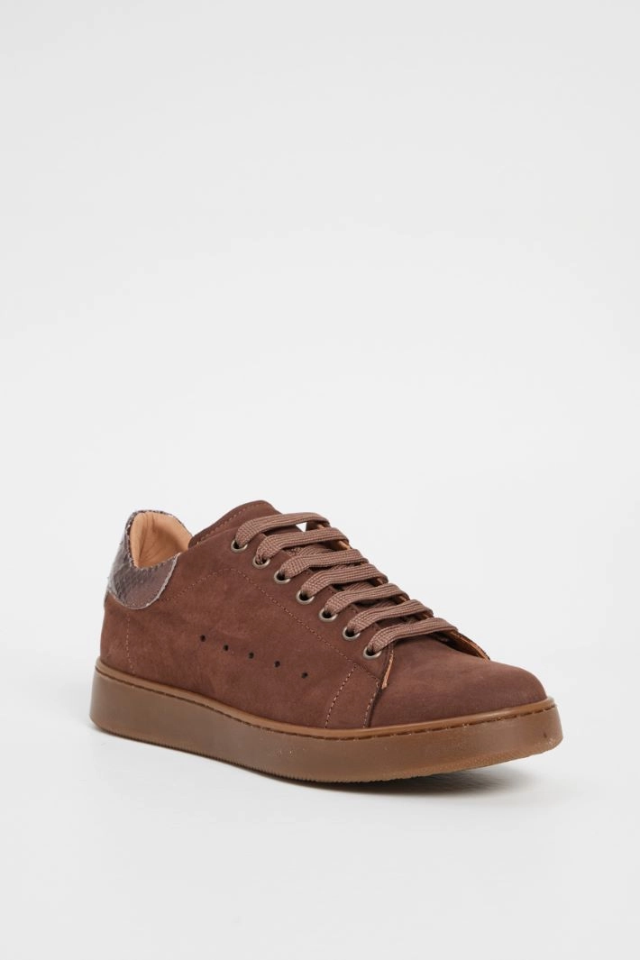 Sneakers in genuine leather with rounded toe and lace-up closure. Leather lining and rubber sole.