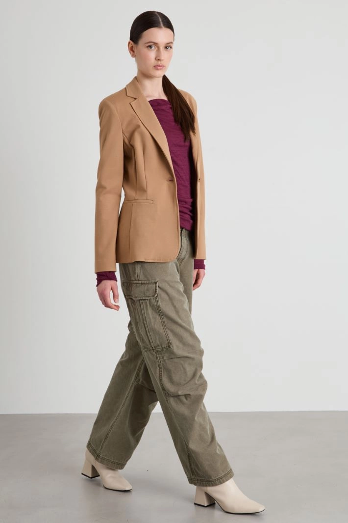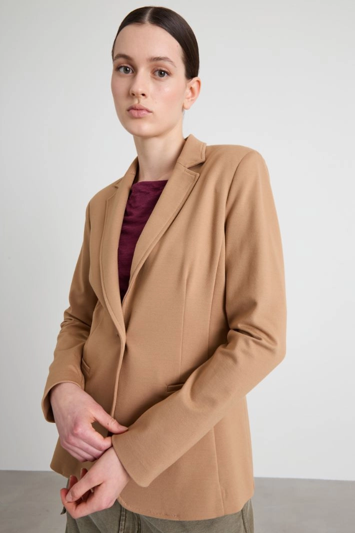 Fitted blazer in stretch viscose jersey blend, with lapel collar, long sleeves and welt pockets. Button fastening on the front. Lined.