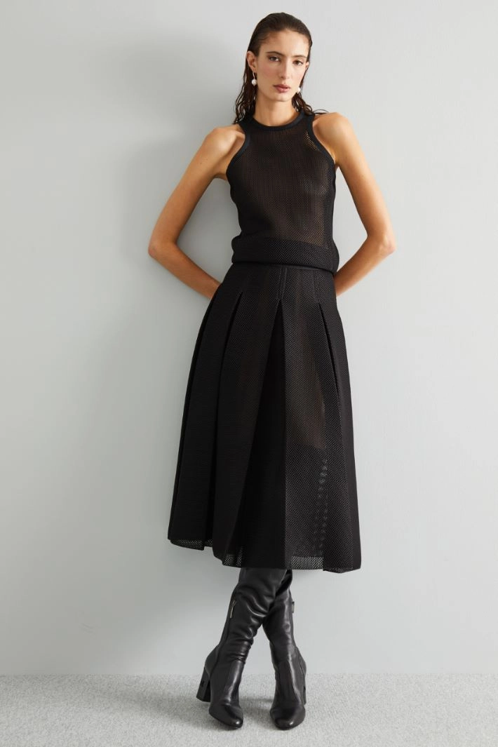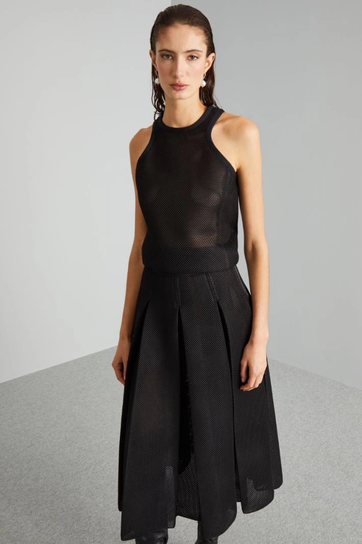 Regular-fit sleeveless top in technical mesh-effect jersey, with crew neck and zip fastening on the back.