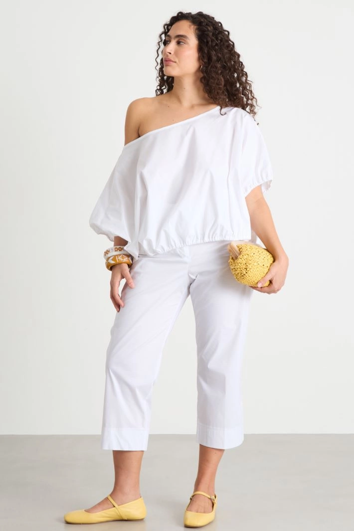Wide boat-neck cropped blouse