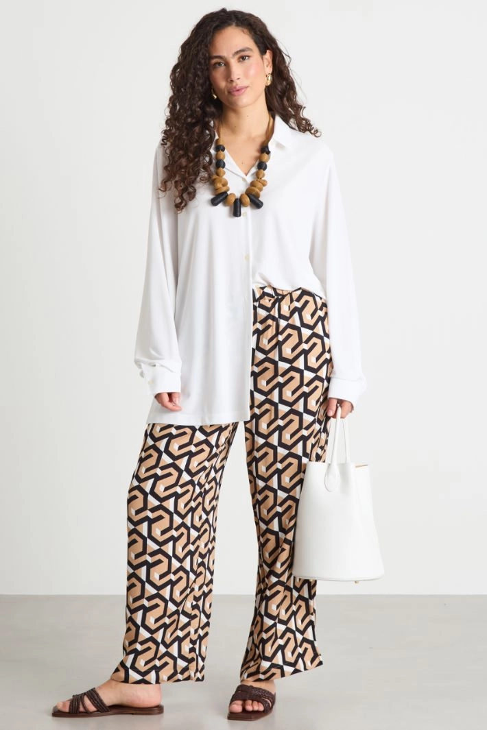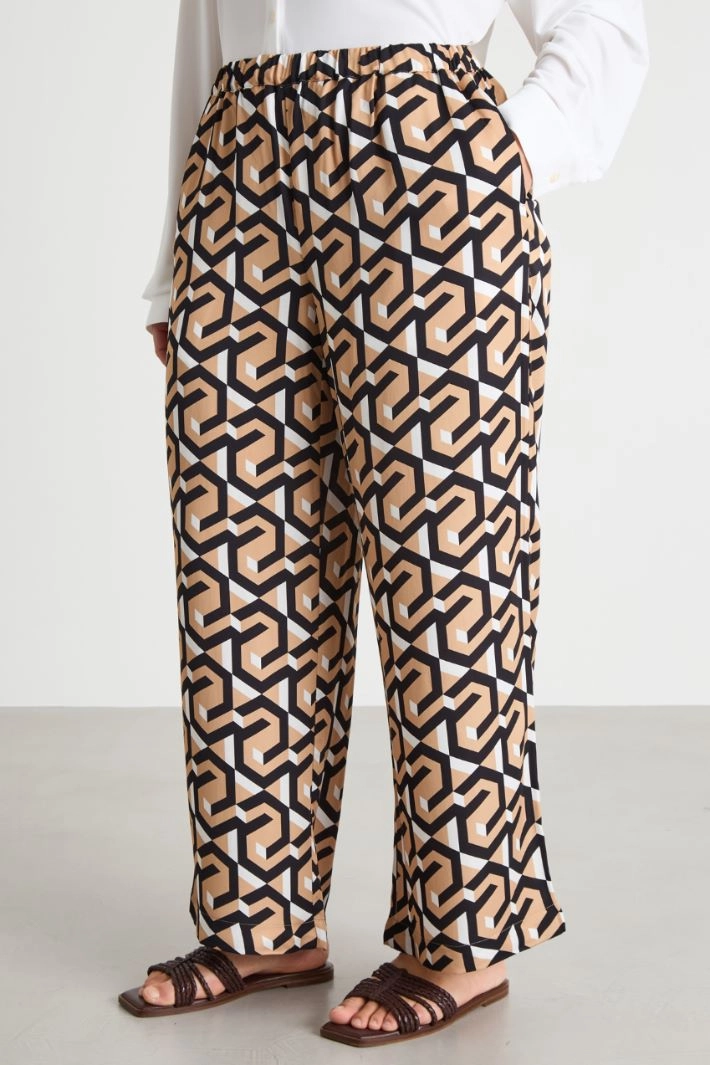 Jogging-style trousers crafted in printed viscose satin, with an elasticated drawstring waist and French pockets.