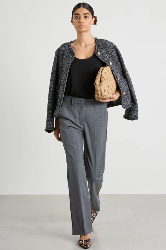 Straight-fit top in double georgette, with round neckline and side slits at the hem.