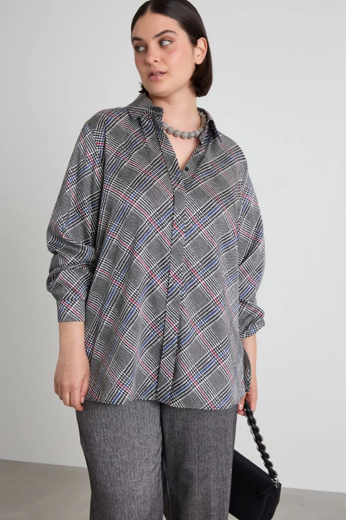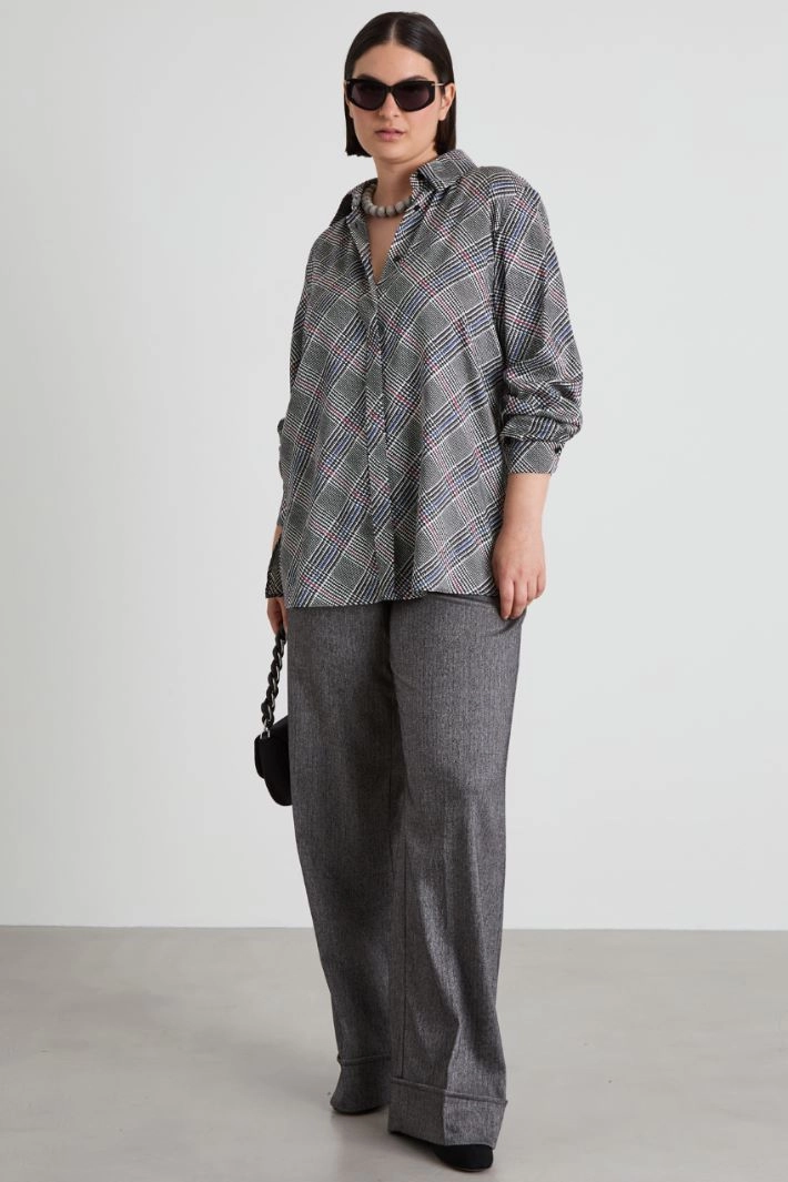 Flowing shirt in printed twill, with classic collar, long sleeves with cuff and button, and hidden button fastening.