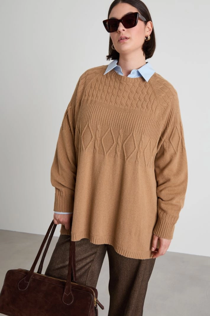 Straight-cut sweater in viscose and wool blend yarn, with a crew neck and long raglan sleeves.