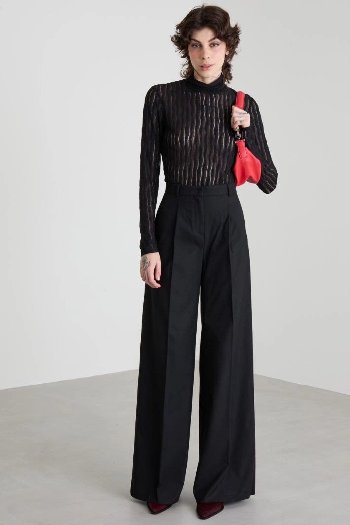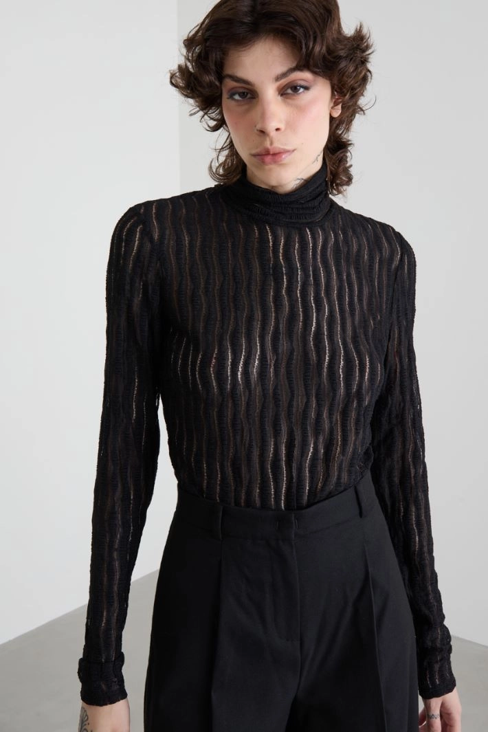 Regular-fit top in stretch velvet jersey, with a fitted collar and long sleeves.