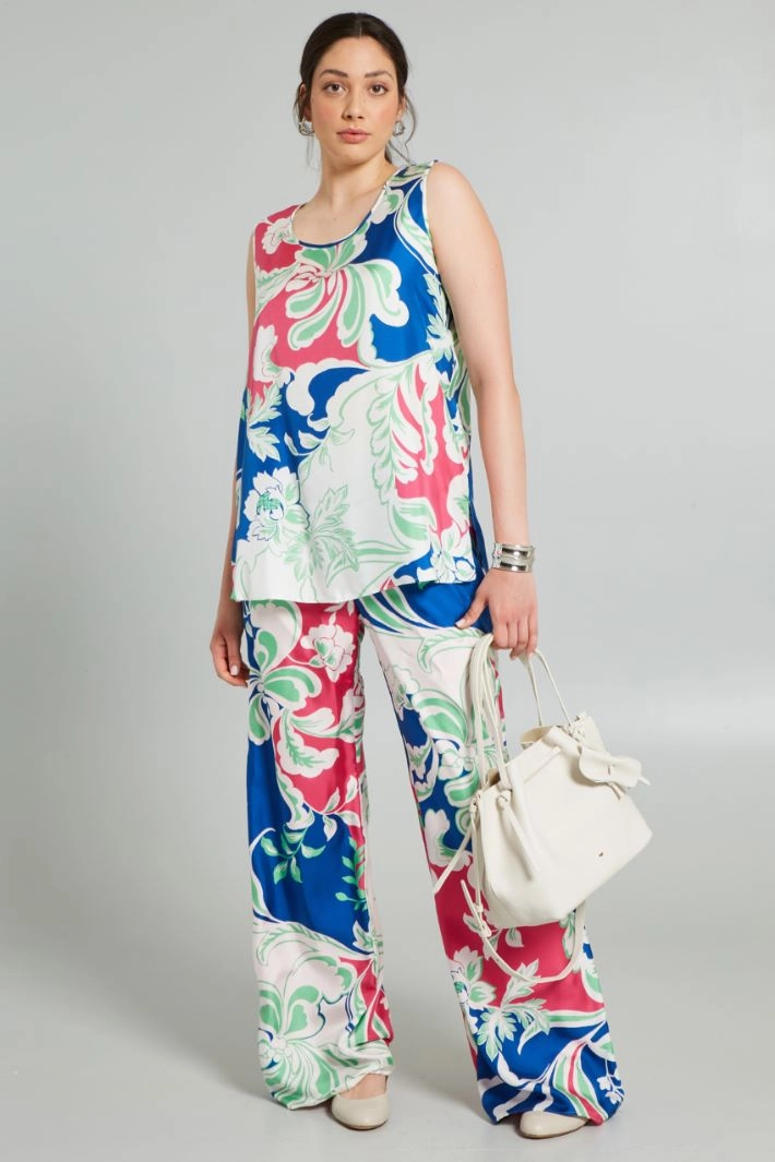 Palazzo trousers in silk twill fabric with elasticated waistband and lined interior.