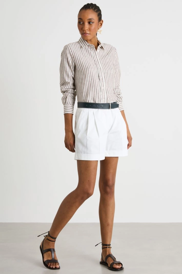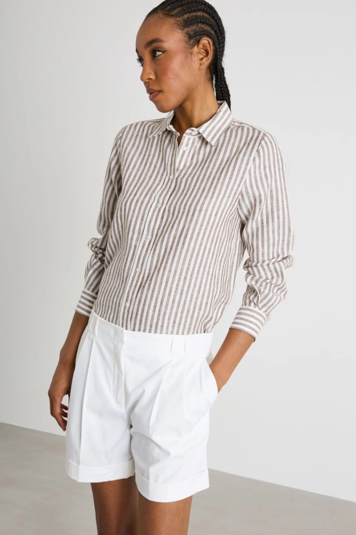 Straight-cut shirt crafted from pure pinstripe linen, with a pointed collar, long sleeves and a yoke with a box pleat on the back. Button fastening.