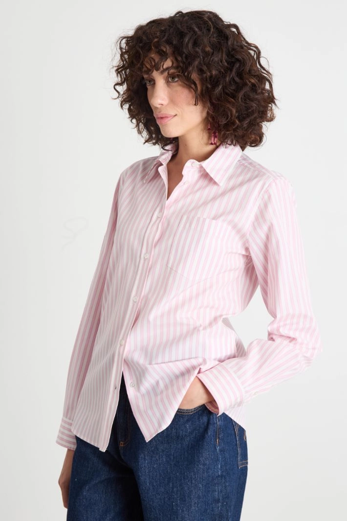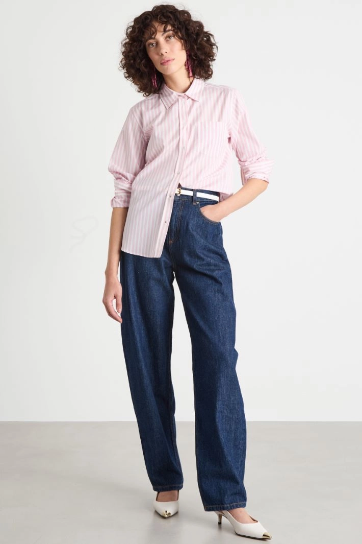 Straight-fit shirt in pure cotton poplin, with a point collar, a patch pocket on the chest, long set-in sleeves with buttoned cuffs, a yoke on the back and a rounded hem. Visible button fastening.