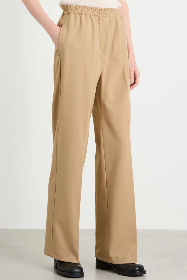 Straight-fit trousers in stretch wool-blend gabardine, with an elasticated waistband finished with an internal drawstring, inset side pockets and welt pockets on the back, and a crease pressed lengthwise.