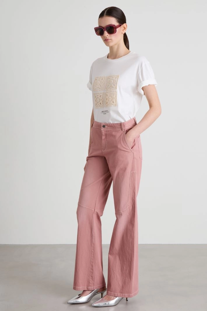 Straight-cut trousers in stretch cotton-blend drill, with belt loops at the waist, French pockets at the front and patch pockets at the back. Zip and button fastening.