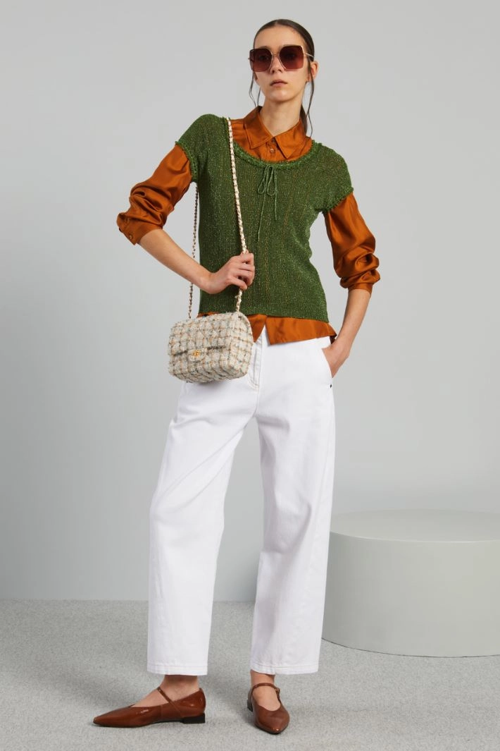 Lace-trimmed lurex jumper